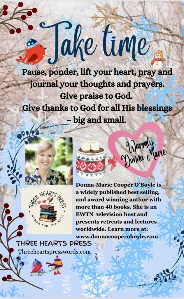 DESCRIPTION: Acclaimed author Donna-Marie Cooper O’Boyle provides a Winter prayer journal for Catholic women. With spaces to record your own thoughts, sentiments, prayers, and resolutions, Donna-Marie has provided a Winter Retreat for those Catholic woman who are serious about their spiritual lives. Weaving wisdom from Holy Mother Church, as well as anecdotes, this large volume will be a comforting resource to take you through the long winter months, while you visit a bit of the Advent season, the glorious Christmas season, as you ring in the New Year, and begin your Lenten journey.
